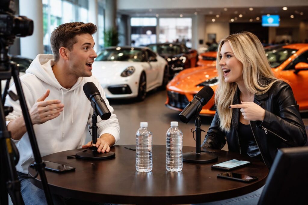 Turn the dealership into a live event environment where creators, fans, and potential buyers gather around automotive conversation.